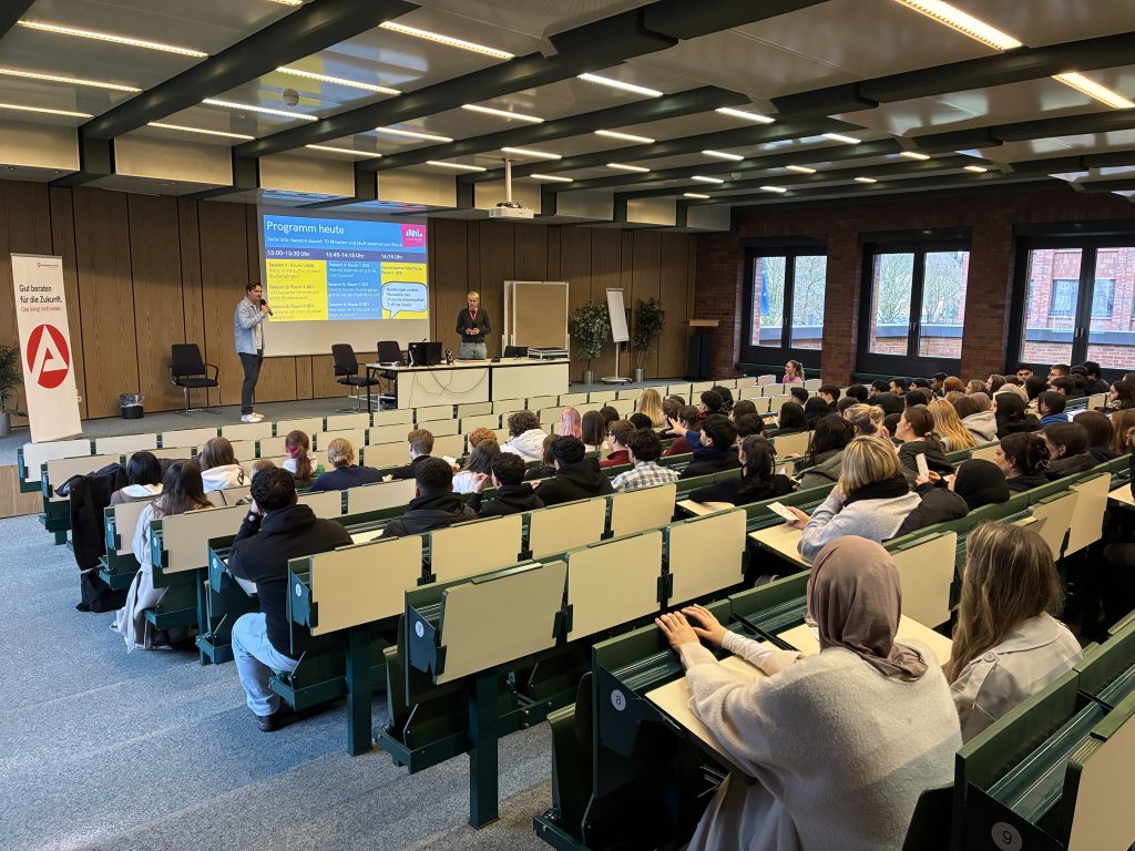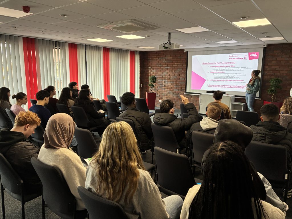 Beim Bochumer Hochschultag 2026 präsentierten sich daher am 13.01. alle Bochumer Hochschulen sowie die Ruhr-Universität Bochum in den Räumlichkeiten der Bochumer Bundesagentur für Arbeit, so dass die Schüler*innen der Q2 die Möglichkeit hatten, dort ihre Fragen rund ums Studieren in Bochum loswerden konnten. Ergänzend konnten sich die Schüler*innen in verschiedenen Workshops informieren und die Gelegenheit nutzen, mit Studenten ins Gespräch zu kommen.