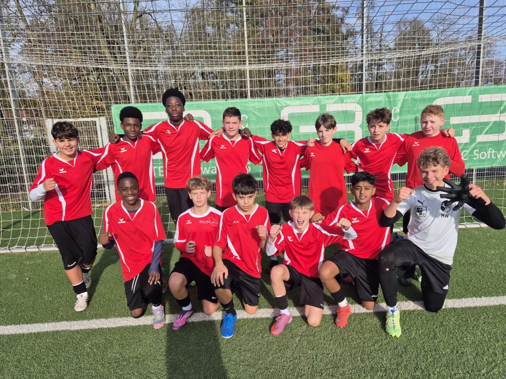 Im ersten Spiel gegen die Erich-Käster-Schule lag die MSM bis kurz vor Ende mit 1:0 im Rückstand. Adnan verwandelte eiskalt einen Foulelfmeter in letzter Minute und ließ die MSM mit dem Unentschieden auf ein Weiterkommen hoffen. Im Finalspiel gegen die Schillerschule, die einen Sieg gegen die EKS erringen konnte, musste folglich ein Sieg her. Matteo im Tor hielt mit ein paar Glanzparaden die Mannschaft im Spiel, während vorne im Angriff die MSM Chance um Chance erspielte. Schlussendlich konnte sich unsere Mannschaft mit 3:0 gegen die Schiller-Schule durchsetzten. Die Siegtore erzielten Adriel, Miran und Raphael. Mit dem Gewinn der Stadtmeisterschaft hat sich die Mannschaft für die Regierungsbezirksmeisterschaften im April qualifiziert.