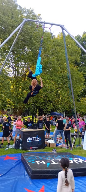 Zum Weltkindertag am 19. September trat der Watt’n Zirkus im Stadtgarten in Wattenscheid auf. Dabei begeisterten die kleinen und großen Artistinnen und Artisten mit tollen Einlagen das anwesende Publikum. Anbei ein paar Impressionen vom Auftritt.